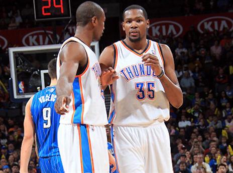 המג'יק (17:7), אחת הקבוצות החלשות בליגה, חזרו ברבע האחרון מפיגור דו ספרתי ואיימו להנחיל לקווין דוראנט וחבריו הפסד ביתי ראשון העונה אך בסופו של דבר הת'אנדר (4:19) שמרו על קור רוח בסיום ועל מאזן ביתי מושלם אחרי 12 משחקים. דוראנט סיים עם שורה סטטיסטית דומה מאוד לממוצעים העונתיים שלו כשקלע 28 נקודות, קטף 9 ריבאונדים וחילק 5 אסיסטים בניצחון השישי ברציפות של קבוצתו. ווסטברוק קלע באחוזים רעים מהשדה אך אף אחד לא יכול לבוא אליו בתלונות אחרי משחק של 20 נקודות 12 ריבאונדים ו-6 אסיסטים. ג'רמי לאמב הצעיר היה האקס פקטור לאחר שעלה מהספסל וקלע 16 נקודות באחוזים מצוינים. ארון אפללו קלע 25 למג'יק וניקולה ווצ'ביץ' רשם דאבל דאבל של 13 נקודות ו-16 ריבאונדים.