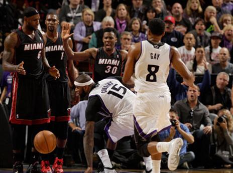 המשחק כבר היה בידיים של מיאמי אבל מריו צ'אלמרס עשה שטויות בשניות הסיום ועלה לקבוצתו במשחק לאחר שהחטיא שתי זריקות עונשין וביצע עבירה בלתי ספורטיבית טיפשית במיוחד על דימרקוס קאזינס לפני תום הזמן החוקי. קאזינס ורודי גיי ניצלו עד תום את השאננות של האלופה שכנראה חשבה על המשחק הגדול נגד פורטלנד מחר, כדי לגרור את המשחק להארכה ולנצח אותו כשהסנטר המאסיבי הוליך את סקרמנטו (19:9) עם דאבל דאבל מפלצתי של 27 נקודות ו-17 ריבאונדים. גיי קלע 26 ואייזיאה תומאס הוסיף 22. לברון קלע 33 נקודות, קטף 8 ריבאונדים ומסר 8 אסיסטים אך גם שלוש שלשות רצופות שלו בדקה האחרונה של ההארכה לא מנעו את ההפסד של ההיט (7:22).