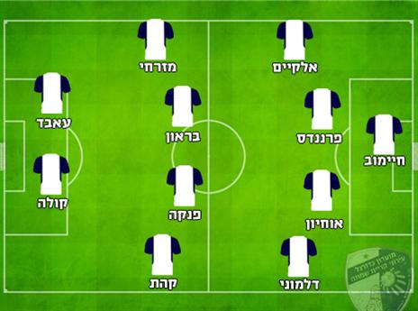 שמעון הרוש נטש את האימון בעקבות כאבים בשריר, אך המגן השמאלי כשיר ופותח. במרכז השדה בראיין גרזיצ'יץ' מחליף את סאשה ופותח לצידו של שי אבוטבול. בחלק הקדמי ימשיכו לשתף פעולה גילי ורמוט, ישראל זגורי ועומר דמארי, כשסלים טועמה מחליף את בסארט עבדורחימי.