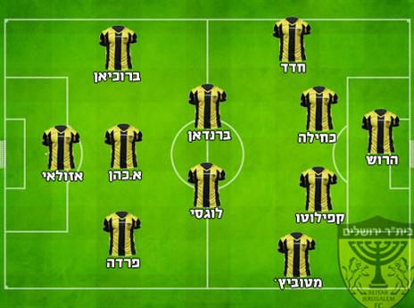 הרכב משוער: אריאל הרוש; דור מלול, טל כחילה, ניסו קפילוטו, דושאן מטוביץ'; מושיקו לוגסי, פאבלו ברנדאן, אבירם ברוכיאן, דני פרדה; איציק כהן, שלומי אזולאי.