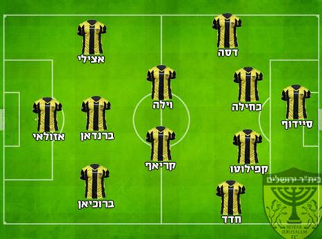 הרכב משוער: אוהד סיידוף; אלי דסה, ניסו קפילוטו, טל כחילה, שי חדד; יונתן וילה, פאבלו ברנדאן, אופיר קריאף, אבירם ברוכיאן; עומר אצילי, שלומי אזולאי.