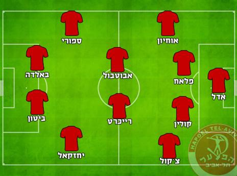 הרכב משוער: אפולה אדל; מתן אוחיון, סארי פלאח, יורגן קולין, אברהם צ'קול; שי אבוטבול, בן רייכרט, רמזי ספורי, שגיב יחזקאל; אמידו באלדה, דודו ביטון.