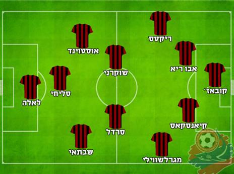 הרכב משוער: פז'מיסל קובאז'; טוסיין ריקטס, טאדאש קיאנסקאס, מהראן אבו ריא (רועי שוקרני), חיים מגרלשווילי; רועי שוקרני, לירן סרדל, יובל שבתאי, אור אוסטוינד; חמדי סליחי, מהראן לאלה.