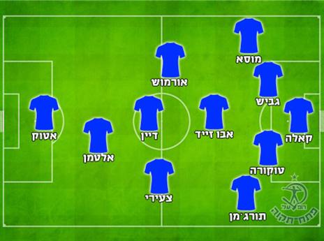 הרכב משוער: טברטקו קאלה, קובי מוסא, עודד גביש, מייקל טוקורה (צ׳ימאזי מ'בה), בן תורג׳מן, חסן אבו זייד, לירוי צעירי, מירקו אורמוש, עומרי אלטמן, גיא דיין (דור כוכב) וגאל אטוק.