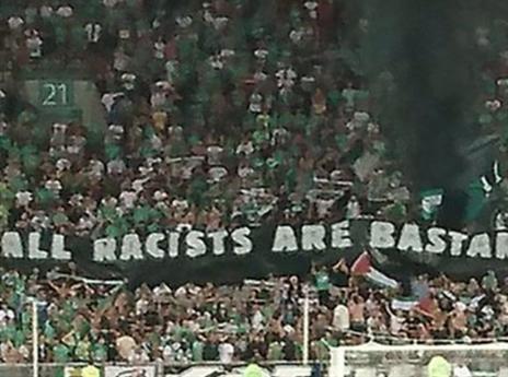 שלט ביציע: כל הגזענים מנוולים. בית"ר טיפשים