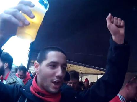 מאיר זיתוני צועד עם אוהדי דניפרו דניפרוטרובסק בוורשה>>
