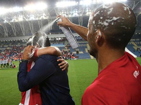 הפועל תל אביב צהלה ושמחה אמש (שני) עם הבטחת העלייה חזרה לליגת העל. השמחה הייתה רבה כל כך עד כי השחקנים זרקו את החולצות לקהל, על אף דרישת האפסנאי שלא לעשות כן היות ואין להם מדים נוספים. לאחר שהחולצות הושלכו גם הוא הבין שאת הנעשה אין להשיב, והבהיר לשחקנים כי עד תום העונה ייאלצו לשחק רק במדי החוץ, אך לא נראה כי זה קלקל את החגיגה.