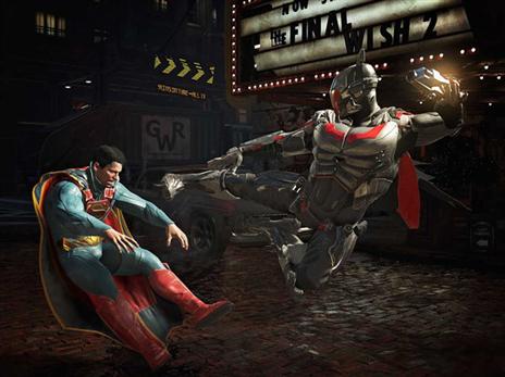 בתור שחקן מכות קז'ואלי, לא ראיתי הבדל גדול בין המשחק לבין דומיו כמו טקן. לפחות לא בבסיס של המשחקיות. עדיין כל כפתור מפעיל גף אחר (יד ימין, יד שמאל וכן הלאה), שילוב של כפתור בסיס זה עם החצים או בקומבו מסוים, ייתן מכה שונה מהמכות הבסיסיות. וכן, כמו בכל המשחקי מכות שנתקלתי בהם, גם המשחקיות של Injustice היא Easy to learn, Hard to master. אבל, יש שינוי קטן בצורת המכות המיוחדות. למעשה, לכל דמות יש יכולת מיוחדת שאפשר להפעיל בלחיצת כפתור פשוטה. המכה הזו לא הכי חזקה, אבל זו תוספת נחמדה לארסנל המכות. בנוסף, אחרי זמן מסוים, אתם תקבלו מעין Power attack, בדומה לטקן 7. את המכה הזאת קצת קשה לחסום והיא בקלות יכולה לשנות את הקרב ב-180 מעלות.