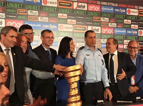 "בפעם הראשונה הג'ירו יוצא מגבולות אירופה ומגיע אלינו. לראשונה תשתתף קבוצה ישראלית דבר שמוכיח את התחזקות ישראל בענף האופניים", אמרה השרה רגב. "משהו טוב קורה לספורט בישראל. המרוץ הזה מצטרף לשורת אירועי ספורט שהתקיימו בארץ הכוללת את אליפות אירופה היורובאסקט, אליפות אירופה בג'ודו ובקרוב גם גראנד פרי בחולון בהתעמלות אומנותית. מרוץ הג'ירו הוא אירוע הספורט הגדול ביותר שנערך בארץ".
