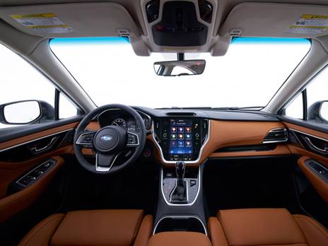 במסגרת החידושים ממתינות בשורות גדולות בתא הנוסעים. בהמשך למסכת העדכונים הפיזיים של השלדה, הקבינה מקבלת זיגוג מעובה בשמשות להשתקת רעשי הרקע מבחוץ וכן איכות תא הנוסעים עלתה מדרגה. ואולם, הפריט הבולט ביותר בדור השביעי של הלגאסי חייב להיות צג הטאבלט המרכזי בגודל 11.6 אינץ' שמיישר קו עם יצרני רכב דוגמת רנו, וולוו וכדומה. הוא לא זמין בגרסת הבסיס - שם יסתפקו הנהגים בצג 7 אינץ', אבל החל מגרסת הביינים הוא נכלל בציוד התקני ובסובארו מדגישים את העובדה שהפעולות הנפוצות ביותר - מיזוג ותפעול מערכת השמע יכול להיעשות גם על ידי פקדים רגילים ואינו מסיח דעת.