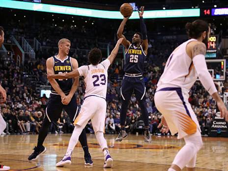 בדקות האחרונות להתמודדות הצמודה בין הנאגטס לסאנס הבנו בדיוק מדוע דנבר נמצאת במקום השני במערב עם שבעה ניצחונות רצופים ומדוע פיניקס מהצד השני כבר מפסידה בפעם השביעית ברצף. פחות משש דקות לסיום הרבע האחרון הקוצה מאריזונה עוד הייתה בפלוס 9 נקודות ונראתה בדרך לניצחון שישבור את הרצף הלא מחמיא, אלא שאז הנאגטס התעוררו לחיים ויצאו לריצת 7:19 שהפכה את הקערה על פיה, תוך חמש וחצי דקות. פיניקס עוד הצליחה להשוות עם שלשה אדירה של דווין בוקר, אבל חדירה לסל בקלאץ' של ג'אמל מארי וצליפה מדויקת מחצי מרחק, 3.2 שניות לסיום קבעה את תוצאת המשחק. מארי גם הוביל את קלעי דנבר עם 28 נקודות ב-12 מ-19 מהשדה וניקולה יוקיץ' הוסיף טרפיל דאבל נוסף (השביעי של הביג מן העונה) כשקלע 22 נקודות, קטף 12 ריבאונדים ומסר 10 אסיסטים. את קלעי המפסידה הוביל ריקי רוביו עם 21 נקודות שאליהן צירף 9 אסיסטים.