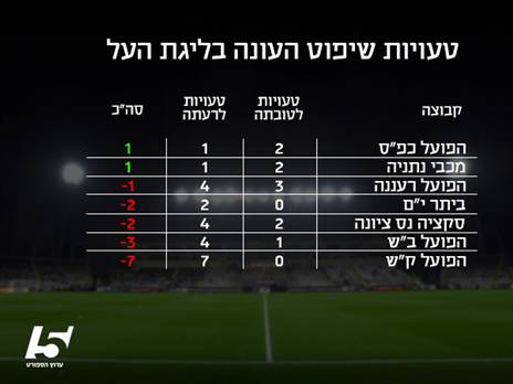 טבלת טעויות השיפוט העונה בליגת העל על פי הוועדה המקצועית: