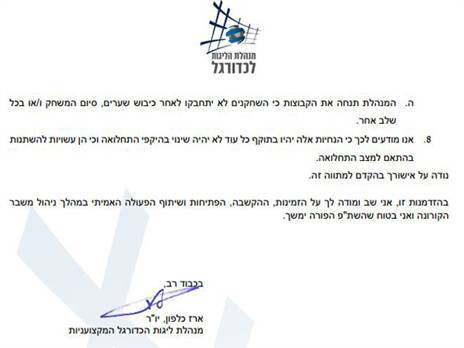 ארז כלפון, יו"ר מנהלת הליגות, מסר: "אני מודה לכל מי שסייע עזר והצליח להביא את הבשורה הכל כך חשובה לציבור אוהדי הכדורגל. מחר אביא את המתווה לאישור דירקטוריון מנהלת הליגות. ענף הכדורגל שכל כך אהוב על כולנו מהווה מקום מפלט למאות אלפי האוהדים שכעת יוכלו לשוב ולצפות בקבוצותיהן האהובות מול מסך הטלוויזיה".