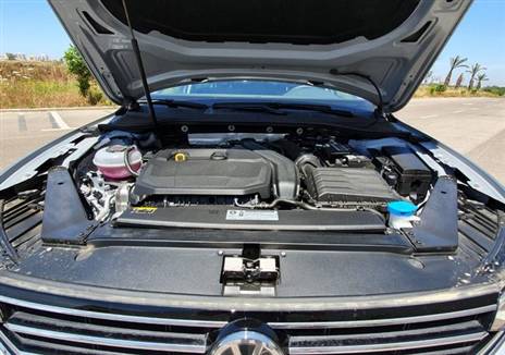 לפסאט המעודכנת שני מנועים לבחירה ותיבת הילוכים אחת. בעבר השתמשו בפולקסווגן כגרסת כניסה במנוע טורבו בנזין בנפח 1.4 ליטר ולגרסאות החזקות יותר במנוע 1.8 ליטר אך ימיהם של המנועים הללו תמו. בגרסת הכניסה הנוכחית שבה אנחנו נהגנו, המנוע הוא טורבו בנזין בטכנולוגיית TSi בנפח 1.5 ליטרים בהספק 150 כוחות סוס שמתקבלים ב-5,000 סל”ד עם מומנט של 25.5 קג”מ שזמין כבר ב-1,500 סל”ד וממשיך לדחוף את המכונית קדימה עד 3,500 סל”ד שזהו התחום המדויק שבו המנועים עובדים על פי רוב ואינם דרושים לטפס לסל”ד גבוה. תיבת ההילוכים כפולת המצמדים בטכנולוגיית DSG עם 7 מהירויות, מאיצה את המכונית מעמידה ל-100 קמ”ש תוך 8.7 שניות ודואגת היטב להוריד את הכוח לגלגלים הקדמיים ולטפס מהר במעלה ההילוכים. עוד לפני שהגענו למהירות 50 או 60 קמ”ש, תיבת הילוכים הזדרזה להגיע כבר להילוך 4 והסל”ד נותר נמוך כל העת וצריכת הדלק נשמרה על התחום הנמוך. זאת בעצם הנוסחה המדויקת שפולקסווגן ביקשו להגיע אליה בזכות צריכת דלק קטנה ככל האפשר. הנתונים היבשים של המפעל אומרים כי הפסאט 1.5 ליטר אוטומאטית צורכת 6.7 ליטר בנזין לכל 100 ק”מ עירוניים ו-4.5 ליטרים של בנזין בכל 100 ק”מ בינעירוניים, קרי צריכה משולבת של 19 ק”מ לליטר בקירוב וכי דרגת הזיהום שלה היא 9 מתוך 15. במהלך נסיעת המבחן במצבי נסיעה שונים שהייתה ברובה בכבישים פתוחים לרבות הפעלת מאמץ על המנוע, הגענו לצריכת דלק מכובדת ביותר עם 15.7 ק”מ לליטר אך היו קטעים במשך הנסיעה בהם הצריכה ירדה ומחשב המנוע הראה על 18 ק”מ לליטר. בידוד הרעשים של המנוע בסה”כ טוב אבל כשדחקנו בו לטפס במעלה הסל”ד עם נעיצת דוושה בביצוע עקיפה, שמענו היטב את קולות המאמץ. מאידך, בנסיעה רצופה בכביש בינעירוני נכנסה לפעולה מערכת ניתוק הבוכנות לצורך שיוט וחיסכון בדלק והמנוע המשיך לתפקד ללא דופי ואלמלא התצוגה על לוח השעונים שציינה את מצב Ecco וניתוק הבוכנות, לא מרגישים את הפעולה בכלל.