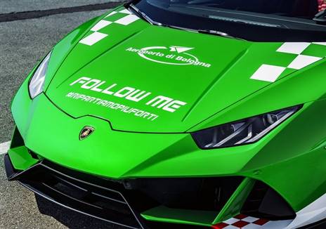 למבורגיני ומנהלת שדה התעופה הבולונזית מנהלים התקשרות שנים ארוכות בשל התקרה המוניציפלית מעליהן והחיבור המוטורי שבין האוויר ליבשה. למבורגיני תורמת באופן קבוע אחת ממכוניותיה לעובדי התחזוקה שאחראים על הובלת המטוסים בין המסלולים עד לנקודת העגינה והחיבור לטרמינל. בכל פעם שרכב של למבורגיני מסיים את מחזור חייו משתדלים ביצרן להחליף את המכונית ואת צבעיה החיצוניים, זולת הכיתוב שתמיד נשאר אותו הדבר: Follow me על החרטום ו-Welcome to bologna על הדלתות. תודו שזה עושה לכם חשק לעלות על מטוס.