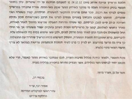 ממשטרת ישראל נמסר בתגובה: "האירוע אינו מוכר. ככל שיש פרטים נוספים, נבדוק בהתאם".