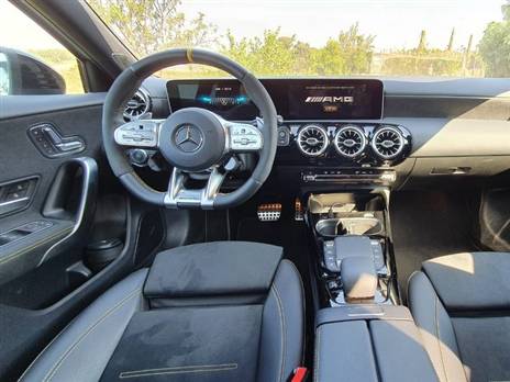 עורך עולם הרכב שפגש את המכונית במסלול המירוצים בספרד, חזר כולו נלהב ולא הפסיק לתאר את החוויה תוך שהוא מקווה שהמכונית הקיצונית תגיע ארצה ברמת הגימור הגבוהה ועם העיצוב הקיצוני שהוצע לנהיגת המבחן כשהיא חמושה בכנפונים קרביים וצבועה בגוון צהוב עז או שחור מאט שהולם אותה. אלא שלמרבית ההפתעה, בחברת כלמוביל שמו את הידיים על מכונית פחות מוחצנת בנוכחותה וזה חוטא לה במידה מסוימת כי המרצדס AMG A45S ראויה לכבוד על הכביש. מידותיה לא השתנו מהגרסה הקודמת וכך גם נפח תא המטען כך שכל הנתונים השימושיים היומיומיים נותרו כשהיו פרט לצריכת הדלק שכעת היא 7.2 ליטרים ל-100 ק”מ על פי היצרן ובאופן נדיר למדי, נתון זהה לחלוטין גם שלנו וזה בעיקר בגלל קטעי נסיעה לא קצרים במצב “רגיל” שהתקזזו בכמה שיגורים מעוררי פלצות וצמאי בנזין.