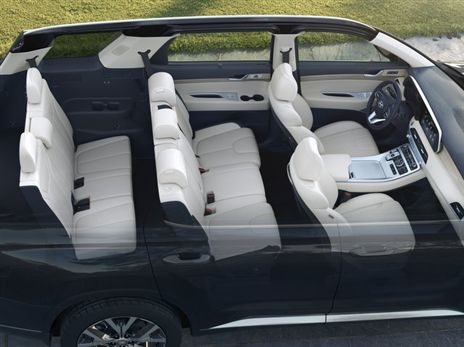 סידור ההושבה נחלק בין 7 ל-8 מושבים בהתאם לגרסה שתיבחר. בראשון, תצורת הפנים היא של 2 מושבים נפרדים במרכז הרכב (מושבי "קפטן") ומאחור ספסל עם שלושה מושבים רגילים. היתרון במושבי קפטן הוא היכולת לעבור בין השורות (מסדרון) לשורה השלישית ולרוב גם מדובר במושבים נוחים יותר. בסידור של שמונה מושבים מחליפים את מושבי הקפטן שלושה מושבים על ספסל קונבציונלי, נע על מסילות. ביונדאי גם מספרים על לא פחות מ-16 מחזיקי כוסות בחלל הפנים ועוד אי אילו תאי אחסנה שימושיים.