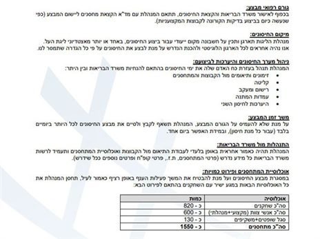 בכפוף לאישור משרד הבריאות והקצאת החיסונים, תתאם המנהלת עם מד"א הקצאת מחסנים ליישום המבצע.