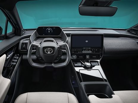 עיצובית, למכונית יש אף סגור עם חתימה מיוחדת ופנסי LED שבהם נורות LED קבועות מחוברות אופטית באמצעות פס כסף. יש חלקי פלסטיק שחורים מתחת לפנסים שנותנים לו אפקט הצללה אבל מעבר לכך טויוטה לא הפריזה עם הרעיונות הויזואלים. הפלטפורמה עצמה מחביאה באופן טבעי כמה יתרונות. לדוגמא, טויוטה מבטיחה כי ל- bZ4 יש מרווח רגליים של סגמנט D בזכות בסיס גלגלים רחב מאחור בלי להתפשר על גודל תא מטען שימושי. בפנים, ל- bZ4X יש לוח מחוונים הממוקם נמוך ופותח את שדה הראיה; זה לא רק מבטיח תצפית טובה על הכביש, אלא גם מעניק לקבינה מראה אוורירי ונעים יותר.