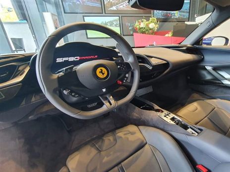 תא הנוסעים פותח בשיטת ה-HMI, שמשמעותו הצבת הנהג במרכז סביבת התפעול והתמקדות בדינמיות סביבו. זה כולל לראשונה צג דיגטלי בגודל 16 אינץ' במוטיב מתעגל שבמרכזו מד הסל"ד ומצידיו 3 תתי תפריטים עם אינפורמציה מלאה אודות מערכות הרכב. ניתן לאפיין אותו בכל מיני פונקציות בהתאם לצרכי הנהג ואף להקרין מפת מסלול על גבי המסך הראשי. מול הנהג פרארי גם הוסיפה גלגל הגה חדיש עם פקדים בסגנון טאץ'-פאד וכל הכיוונים הנדרשים לכיול המכונית עם בורר סלקטיבי בעל מצבים מובחנים.