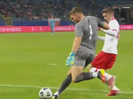 כבר אחרי 7 דקות ישראל נקלעה לפיגור משער אומלל ביותר. כארם ג'אבר החזיר כדור אחורה לדניאל פרץ, השוער עצר לא טוב את הכדור וסמולינסקי חסם את המסירה של פרץ והכדור עשה את דרכו אל הרשת, 0:1 לפולין. בדקה ה-19 פרץ התעשת והציל כדור מסוכן של יאקוב קיוויור.