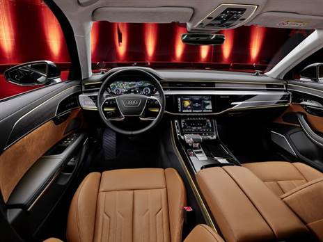 חלל הפנים של ה-A8 לוקח צעד גדול קדימה בכל הקשור לאפיון "הטרקלין הממונע", במיוחד עבור אלה שיושבים בשורה השנייה. אפשרויות ההתאמה האישית, כמו תמיד, לא נגמרות: גרסת בסיס הגלגלים הארוך, במיוחד, משלבת סאלון עם שזלונג לו מספר מצבים, החל משיכוך כריות של התמיכה הצידית והמותנית, ועד משענת הרגליים המחוממת עם עיסוי משולב - זוהי פונקציה הכוללת שבע תוכניות ו-18 כריות פנאומטיות. חסר לכם עוד? משענות הראש מתכווננות חשמלית, הקונסולה המרכזית האחורית באורך מלא (שניתן להשלים עם שולחנות נשלפים), מיני בוקס עם מקרר קטן והטאבלטים החדשים בגודל 10.1 אינץ' עם רזולוציית Full HD של מערכת הבידור, כולם תורמים לבידוד מלא מהסביבה.
