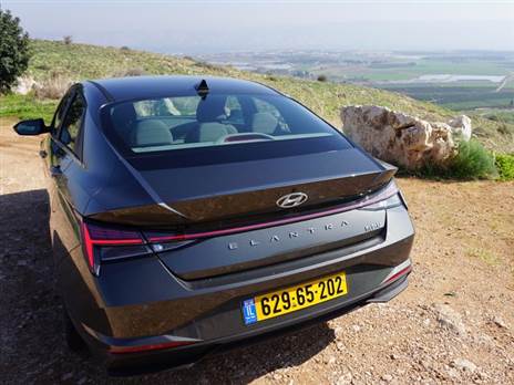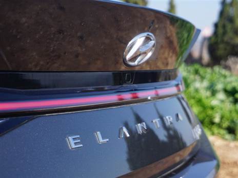 את הוואקום שנפער מתחת לאיוניק תמלא יונדאי אלנטרה היברידית, ומספיק רק לחלוף על פניה כדי להגיע למסקנה שהקוריאנים השחיזו מקלדות, ניתקו עצמם מעימות מול הפריוס (שעיצובה בדור האחרון הפך לחייזרי בכל תולדותיה) והמריאו על גלי הדמיון, הרחק משלד הפאסטבק של האיוניק. האלנטרה, אם ככה היא בהחלט סיפור אחר; מאוד תאטרלית במראה שלה, נמוכת קומה (1.42 מ') עם יציבה של קרוקודיל, על הגחון. דומיננטית ומחודדת, מושחרת בחזית, שופעת צורות גאומטריות שנמתחות אל קו המותן ומשוות לה מבנה דמוי קופה עם חגורת LED לכל רוחבה של דלת תא המטען ובגישור הפנסים. זהו עיצוב תוקפני, בוטה, שהזיקה בינו לבין רכב בעל חמלה סביבתית נראה מעט רופף. אבל בואו לא נהיה חד ממדיים: אותה אלנטרה היא בוגרת חטיבת N (מחלקת הספורט) כך שהיא תגיע לימי המסלול עם תלבושת נכונה (וביצועים כהלכה).
