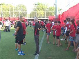 אחרי שנכנסו לכר הדשא והצטלמו עם השחקנים החדשים ודיברו עם הצוות המקצועי, שכולל גם את עומר דמארי, אוהדי הפועל ת"א גם שרו בגנות ההנהלה.