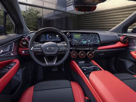 כל הגרסאות כשירות לטעון במהירות של עד 190 קילוואט מהמסופים, ובקבינה מסך מולטימדיה ראשי בגודל 17.7 אינץ' ולוח מחוונים דיגיטלי בגודל 11 אינץ'. עיצובית שברולט לוקחת השראה מפה ושם ועם קצת דמיון מהצד הגרמני נראה כי פתחי המיזוג מזכירים את התבנית שמרצדס-בנץ משתמשת בדגמיה, אם כי באופן כללי אפשר לומר שעיצוב סביבת הנהיגה של שברולט בלייזר EV נראה די מקורי ברובו.