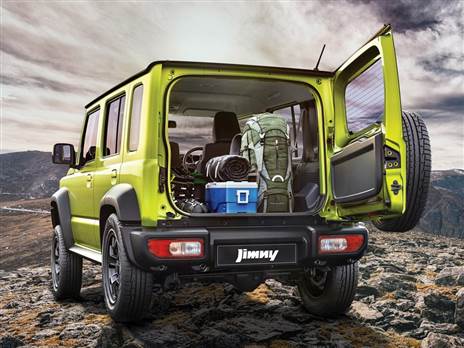 הג'ימני החדש מאמץ עוד שתי דלתות מאחור עם פרופיל מאוד סימטרי ורבוע, מוסיף שטח חלונות ואור לקבינה ומחזק את הצד השימושי שלו, מה שהופך אותו לג'ימני האדפטיבי ביותר אי פעם מאז הוצג בשנות ה-90 (מעל 3.2 מיליון מכירות עד היום). פרופורציונלית, בהשוואה לדגם הקצר של הדור הרביעי הוא התארך לא מעט, אבל סוזוקי הגבילה אותו ל-3.99 מ' (תוספת של כ-50 ס"מ), וזאת משום שבהודו גובים מס מוגדל על כלי רכב שאורכם מעל ארבעה מטרים. שאר המידות - רוחב 1.66 מ', בסיס גלגלים שצמח ב-34 ס"מ ל- 2.59 מ', מרווח גחון 21 סנטימטרים וגובה המרכב 1.72 מ'.