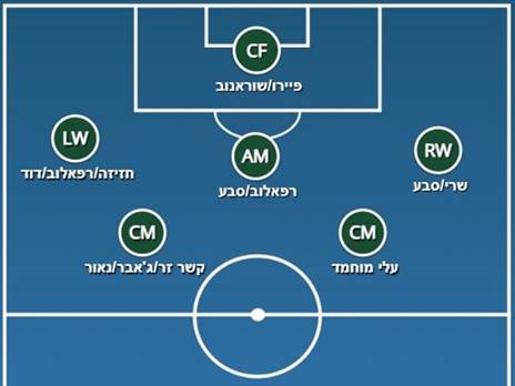 התשובה הפשוטה היא להחזיר את שרי לעמדת הכנף הימנית, בה הרבה לחתוך עם רגל שמאל החזקה, אבל אין ספק שמדובר בסימן שאלה בנוגע ליכולת שלו לעשות את התפקיד הזה שוב. בכל מקרה, יהיה קשה מאוד לוותר על אחד מהשניים במערך כזה והעובדה שנכון לעכשיו לירוקים אין שני קשרים דומיננטיים שיוכלו לשחק מתחת ל-10 (לא בטוח שעלי מוחמד ואולי מחמוד ג'אבר/אביאל זרגרי/גוני נאור זה מספיק), מעידה שיכול להיות שזהו מערך שפחות ישמש אותם.