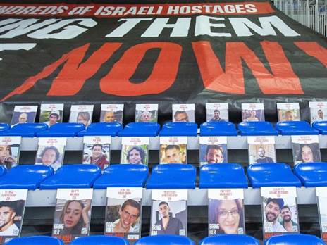 במהלך אימון הקליעות של הצהובים הבוקר, נתלו תמונות החטופים על הכיסאת אולם.