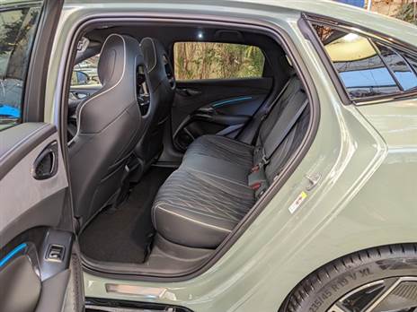 מלפנים המושבים נוחים, ומאחור מרווח ונוח לשני מבוגרים, אך האבזור מינימלי וכולל שני שקעי טעינה ופתחי מיזוג קטנים, מה שיעמוד למבחן בקיץ הישראלי עם הגג פנורמי. הוא אומנם מסנן קרינה אך במקום וילון נגלל חשמלי יש סוכך מקורי להתקנה ידנית המחולק לחלק הקדמי והאחורי.