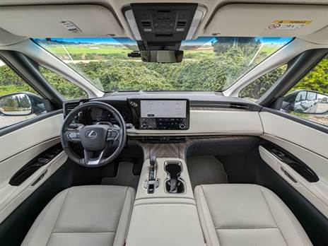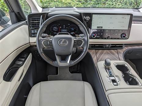 מבפנים היוקרה הקלאסית של לקסוס נמצאת בכל פינה. יש כאן דיפוני עור בהיר בדשבורד ובדלתות, גימורי עץ (גם בהגה) ועיטורי מתכת בגוון זהב-נחושת. איכות החומרים גבוהה ומשרה אווירה יוקרתית, אך כמה פאנלים הרגישו פחות מהודקים באופן שלא הולם את לקסוס וגם חבל שהשטיחונים גם כן בצבע קרם, מה שמתלכלך מהר מאוד.