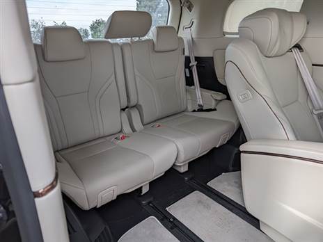 הכניסה לשורה השלישית פחות נוחה, אך מושבי השורה השנייה זזים במהירות. לכאורה יש כאן שלושה מושבים, אך המושבים מפוצלים 50/50, כך שממש לא נוח לשבת במרכז, גם לא לילד/נער. שני מבוגרים יסתדרו פה עם מרווח ראש וברכיים סביר לגמרי, פתחי מיזוג עיליים, שקעי USB, אפשרות כוונון למשענת הגב, משענות יד במרכז, מחזיקי כוסות, וויי תלייה וידיות אחיזה, תאורת תקרה ואפילו תא קטן בתקרה.