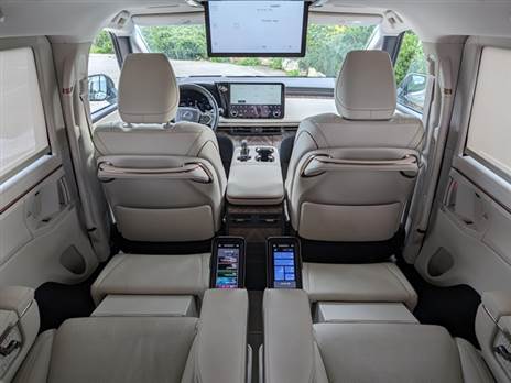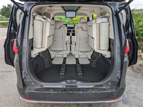 עיצוב ותא נוסעים: נראה כמו לקסוס, אבל מיניוואן. איכות החומרים גבוהה, המרווח אדיר בשורה השנייה וסביר בשורה השלישית. תא המטען סמלי כשכל המושבים בשימוש.