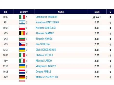קפיטולניק רשם 2.21 מטרים לאחר שרשם ביצוע נקי בכל אחת מארבעת הקפיצות שלו. האלוף האולימפי ג'ינמרקו טמברי רשם קפיצה אחת בלבד - 2.21 - עבר ויהיה גם כן בגמר, כשהוא הפייבוריט לזכות במדלית הזהב לעיני הקהל הביתי.