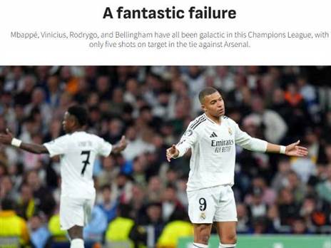 ב"אס" בחרו בכותרת: "כישלון מפואר" עם תמונת אכזבה שלו ברקע, כשציינו כי הוא סיים עם 0 בעיטות למסגרת, ורשמו: "ארסנל פוצצה אז את פרויקט הגלאקטיקוס ההוא ב-2006 ועשתה זאת בקלות גם הפעם. העזיבות של טוני קרוס, נאצ'ו וחוסלו לא אמורות להיות משמעויות אם מאותה הדלת נכנס אמבפה. אך הצרפתי וחבריו להתקפה לא היו אפילו הצל ממה שהם אמורים להיות".