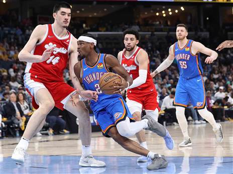 הת'אנדר פגשו את ממפיס נטולת ג'ה מוראנט הפצוע וראו לא מעט אופי מצד ממפיס, בפרט מצידו של סקוטי פיפן ג'וניור שסיים עם 30 נקודות, 11 ריבאונדים ו-4 אסיסטים. הם הגיעו ליתרון של 7 נקודות ברבע הראשון, ואז שיי גילג'ס אלכסנדר נכנס למשחק.