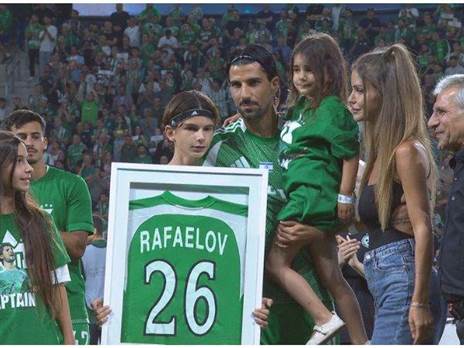 לרפאלוב הוענקה במתנה החולצה המקורית שלו, מספר 26, משמינית גמר גביע אופ"א ב-2007, עם סרט הקפטן מהעונה הנוכחית. מי שהעניק לו את המתנה בשם המועדון היה בנו אדריאן, שמשחק בילדים ג' במכבי חיפה. בהמשך הוקרן סרטון פרידה מהשחקן, ששיחק בקבוצה בין 2004 ל-2011, שוב בין 2023 ל-2025, זכה איתה בשלוש אליפויות ושיחק בשלב הבתים של ליגת האלופות.
