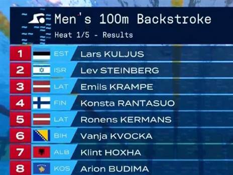 אוקאן גולדין קבע שיא ישראלי לנוער 51.91, אך לא העפיל לחצי גמר 100 מטרים פרפר (מקום 31 בכללי).