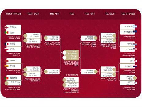 משחק 60: מנצחת משחק 55 (מרוקו-ספרד) - מנצחת משחק 56 (פורטוגל-שוויץ) - ב-10 בדצמבר