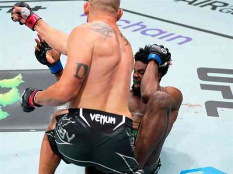 כזכור, הקרב הזה כלל לא היה אמור לקרות. סנהייגן כבר היה בדרך להילחם בעומאר נורמגומדוב, שלבסוף פרש בעקבות פציעה ופונט החליף את הדגסטני בהתראה קצרה של שבועיים. למרות זאת, הקרב נפתח בניסיון טייקדאון של סנדהייגן, שהפך לניסיון חניקה של פונט שכמעט הצליח. בסיבוב השני סנדהייגן רשם זמן שליטה נכבד על הקרקע, שנמשך גם בסיבוב השלישי. בסיום, הטייקדאונס והשליטה על הקרקע עשו את שלהם והחלטת השופטים הלכה עם סנדהייגן, שטען בסוף הקרב שהוא מחכה למנצח בין אלג'מיין סטרלינג ושון אומאלי. צפו בנגן הווידאו למעלה.