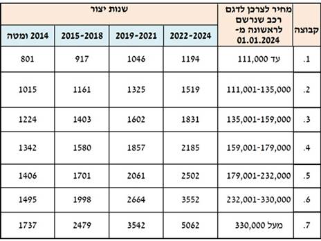 משרד התחבורה והבטיחות בדרכים פרסם מסמך עדכני אודות תעריפי אגרות הרישוי, שיכנס לתוקף החל מה-1 באפריל 2024. השפעת עליית המחירים, בהתאם לקבוצות הרישוי, לא פונה רק לבעלי רכב חדש, שכן האגרה מחושבת ב-4 מדרגות לתקופה של 10 שנים ולאחר מכן מתקבעת, עד הרישום כאספנות משנתו ה-30.