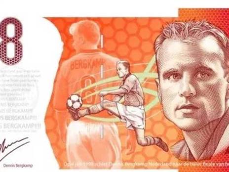 בנוסף, במבט מעמיק על השטר, ניתן לראות את תמלול שידור אותו שער מפורסם, כשהשם "Dennis Bergkamp" חוזרת על עצמה מספר פעמים, בכל פעם בפונט גדול יותר כדי להדגיש את צעקת השדר הבלתי נשכחת.