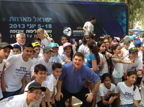 התלמידים זכו לקבל תצלומים למזכרת ע"ג מגנט ממותג יורו, תמונות של שחקני נבחרת ישראל, גלויות יורו ועוד הפתעות. ראש העיר אמר לסובבים: "ככל שטורניר היורו מתקדם אני חש את הדופק החזק של הציבור, שמחכה בקוצר רוח לפתיחת המשחקים. אני יכול לבשר לכם כאן שכבר בתחילת השבוע הבא נוציא כרטיסים למכירה במחירים מוזלים במיוחד לתושבי העיר פ"ת, באמצעות המתנ"סים שלנו החולשים על פני כל העיר. כמו כן אני מבטיח שנעשה מאמץ גדול לסבסוד מלא לכרטיסים לכל המשחקים שייערכו באצטדיון המושבה, עבור מי שידו אינה משגת. אני קורא לכל תושבי העיר פתח תקוה לבוא לאצטדיון המושבה החל מה-6.6.13, צפויה לעיר חגיגה גדולה".