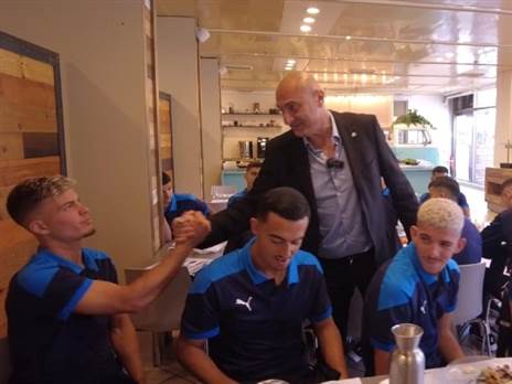 "אני מאוד מאמין בתוצרת מקומית, שחקנים, מאמנים. אנחנו כהתאחדות נעמיד לארשותכם את כל מה שצריך כדי שתמצו את הפוטנציאל. הוכחתם כבר בעבר שהשמיים הם הגבול, ואני בטוח שכל אחד ואחד מכם בטוח שאירופה זה לא מספיק, ועכשיו אתם הולכים לכבוש את העולם. אני רוצה לראות אתכם מציגים את הכדורגל שאתם מאמינים בו, נשארים מאוחדים, והכי חשוב - נהנים מכל רגע. תבנו זכרונות לעתיד, אתם הפנים של הכדורגל הישראלי, של החברה, של המדינה. תוודאו בכל רגע שהפנים יהיו מכובדים, מעוררי השראה, וכאלה שראוי להפוך למודל".