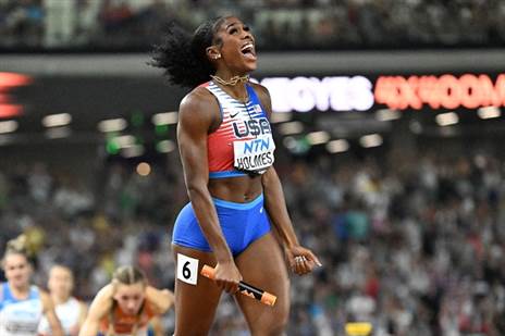 עוגמת נפש היתה לנבחרת ההולנדית בגמר של 400X4 מעורב. אלכסיס הולמס האמריקאית הגיעה ראשונה לקו הסיום וגרפה את הזהב עם שיא עולם (3:08.50 דקות) לאחר מעידה של פמקה בול ממש במטרים האחרונים. בריטניה השיגה את הכסף (3:11.06) וצ'כיה את הארד (3:11.98). ההולנדים הפילו את המקל ולא רשמו תוצאה.