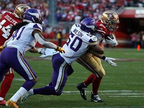 הניינרס בגמר ה-NFC לראשונה מאז 2013 אחרי שהסתדרו די בקלות עם הווייקינגס, שמצדם נותרו ללא אנרגיות, שבוע לאחר ההפתעה בניו אורלינס. כל קבוצה השיגה טאצ'דאון ברבע הראשון, אבל שם זה גם די נגמר מבחינת האורחים, כאשר במחצית השנייה סן פרנסיסקו שמה 13 נקודות ללא מענה. ג'ימי גארופולו נזקק ל-11 מסירות מדויקות בלבד וסיים עם 131 יארד, טאצ'דאון ואיבוד. טבין קולמן גיבה אותו עם 105 יארד ושני טאצ'דאונים בריצה. קירק קאזינס סיפק 172 יארד, טאצ'דאון ואיבוד משלו בצד המפסיד.